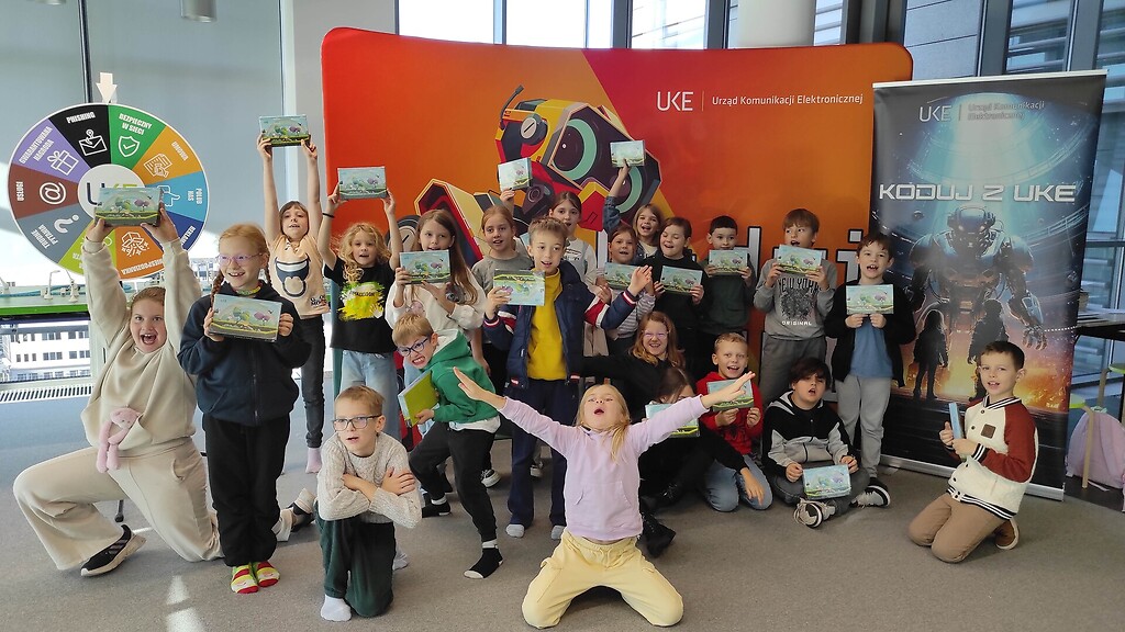 At the Office of Electronic Communications, we understand that the key to developing digital competence is early education combined with fun. On November 4th, we had the pleasure of hosting a highly enthusiastic group—children from Primary School No. 52 named after Maciej Aleksy Dawidowski "Alek" in Warsaw. The students traded their school desks for a UKE workshop room to begin their adventure with programming, using the modern educational robot, Photon.