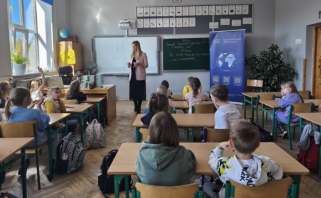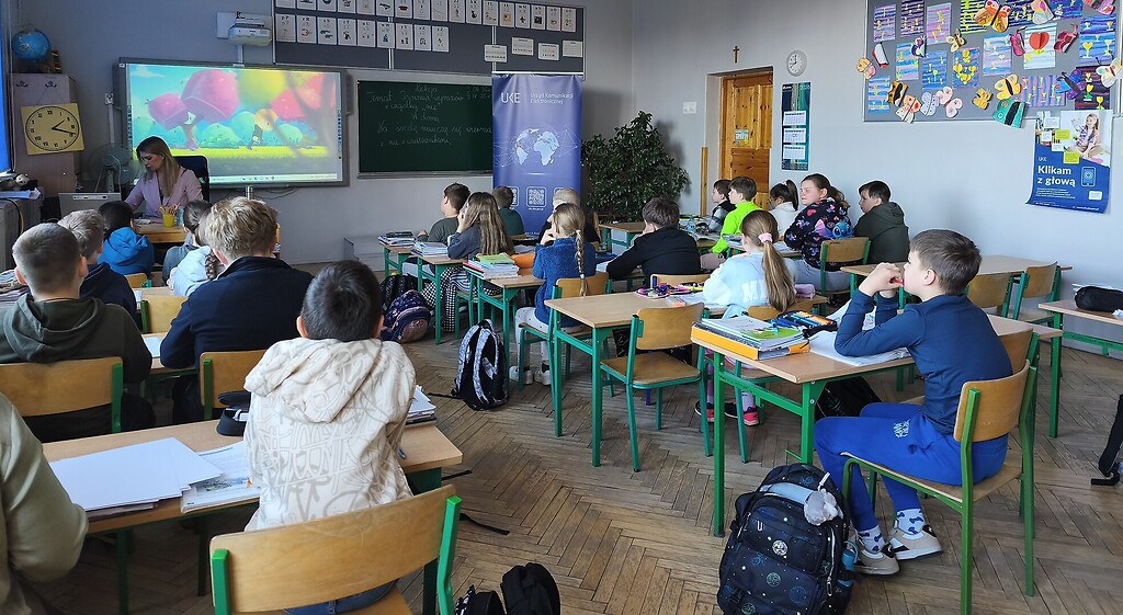 Spotkanie z uczniami klas I–III Szkoły Podstawowej nr 47 im. Kornela Makuszyńskiego w Szczecinie poświęcone było zagadnieniom związanym z bezpiecznym i odpowiedzialnym funkcjonowaniem w środowisku cyfrowym. Celem zajęć było zwiększenie świadomości najmłodszych użytkowników urządzeń telekomunikacyjnych w zakresie zagrożeń występujących w sieci oraz kształtowanie właściwych nawyków sprzyjających ochronie prywatności i bezpieczeństwa.