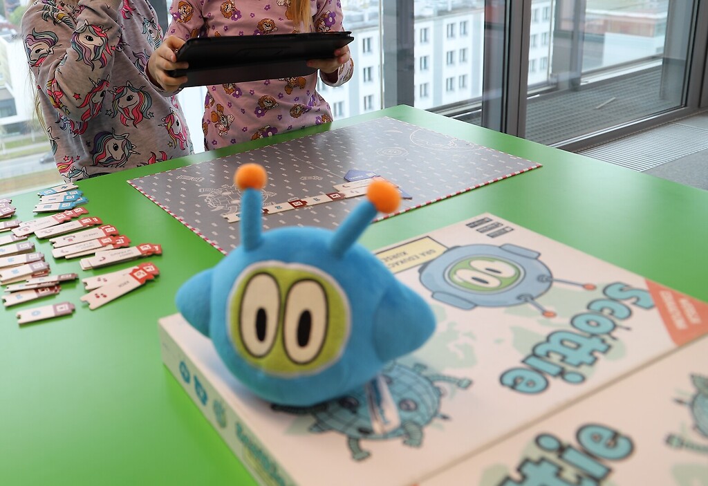 Na dzisiejszych zajęciach z kodowania mieliśmy wyjątkową okazję pracować z uczniami Szkoły Podstawowej nr 80 im. Marii Kownackiej w Warszawie oraz Szkoły Podstawowej nr 387 im. Szarych Szeregów w Warszawie, którzy poznawali świat programowania poprzez grę Scottie GO!.