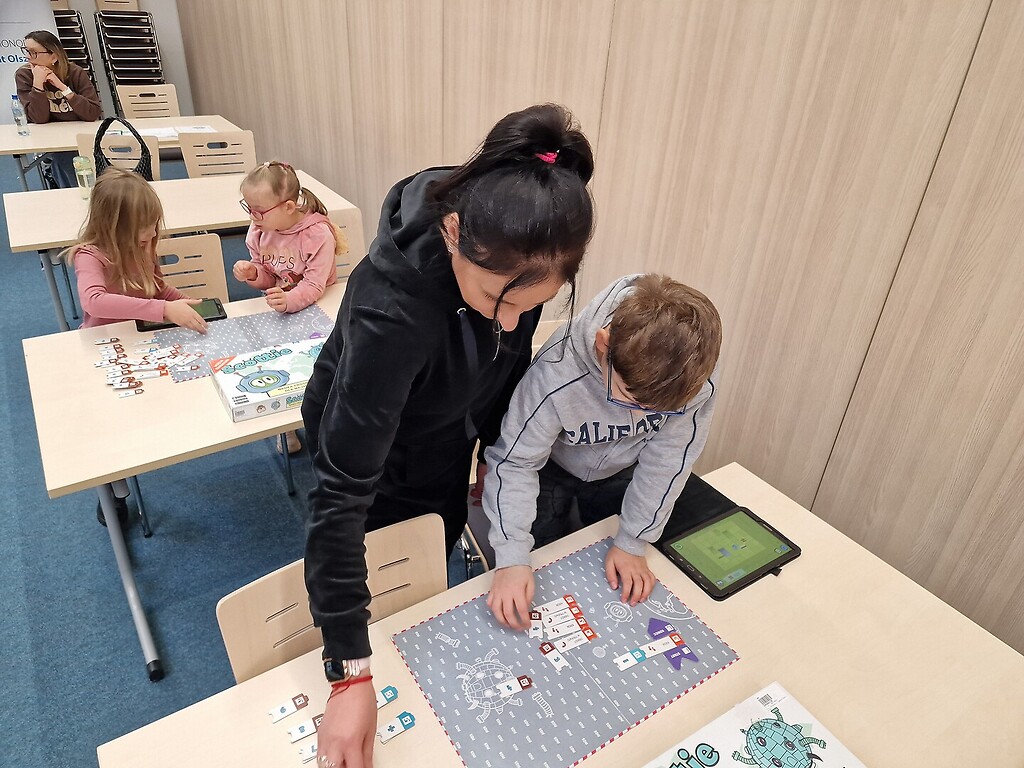Uczestnicy eksplorowali zasady programowania za pomocą innowacyjnych narzędzi. Poprzez interaktywne gry edukacyjne, takie jak Scottie Go!, oraz pracę z edukacyjnymi robotami Photon, dzieci uczyły się podstaw języka kodowania w praktyce. Kluczowymi elementami były nauka logicznego myślenia, planowanie sekwencji działań oraz skuteczne rozwiązywanie problemów – wszystko to w formie inspirującej zabawy. Dzięki temu każdy, niezależnie od wcześniejszego doświadczenia, mógł stać się młodym programistą i poczuć satysfakcję z ożywiania własnych projektów.