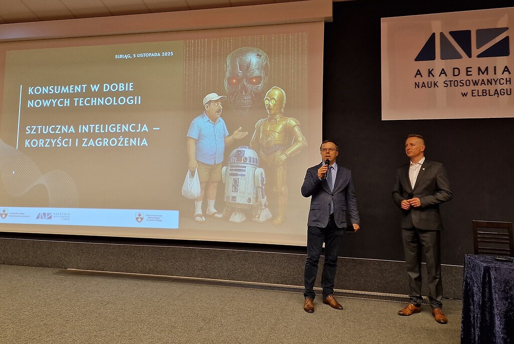 Wczoraj w Akademii Nauk Stosowanych w Elblągu odbyła się konferencja poświęcona roli sztucznej inteligencji we współczesnym życiu konsumenta. Wydarzenie zgromadziło przedstawicieli administracji publicznej, organizacji konsumenckich, środowiska akademickiego, studentów i uczniów elbląskich szkół średnich.