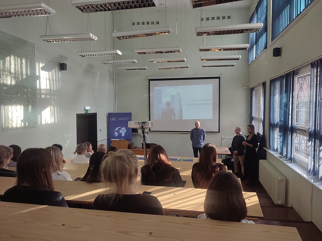 Podczas zajęć podzieliliśmy się naszymi doświadczeniami oraz zaprezentowaliśmy główne założenia kampanii edukacyjnych UKE – „Klikam z głową” i „Wiem, co podpisuję”. Rozmawialiśmy o zagrożeniach, jakie mogą towarzyszyć aktywności w sieci, m.in. o hejcie, cyberprzemocy, nieświadomym udostępnianiu danych osobowych czy fałszywych informacjach. Wspólnie zastanawialiśmy się, jak rozmawiać o tych zjawiskach z dziećmi i młodzieżą, jak rozwijać ich cyfrowe kompetencje i uczyć krytycznego myślenia.